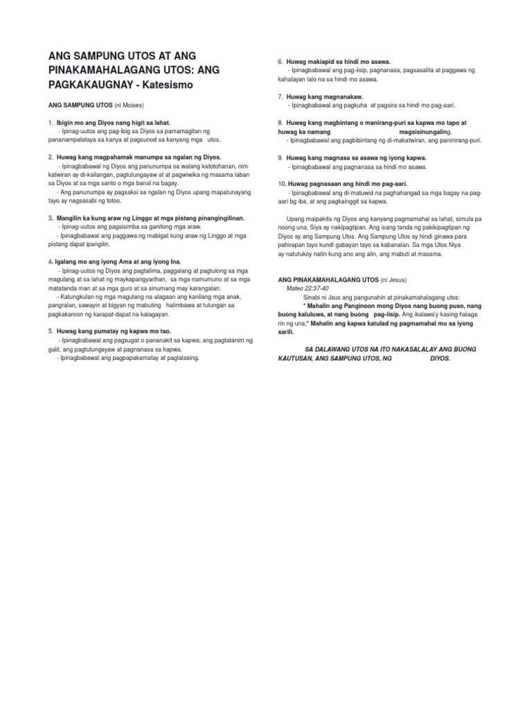 Ang Sampung Utos At Ang Pinakamahalagang Utos Pdf